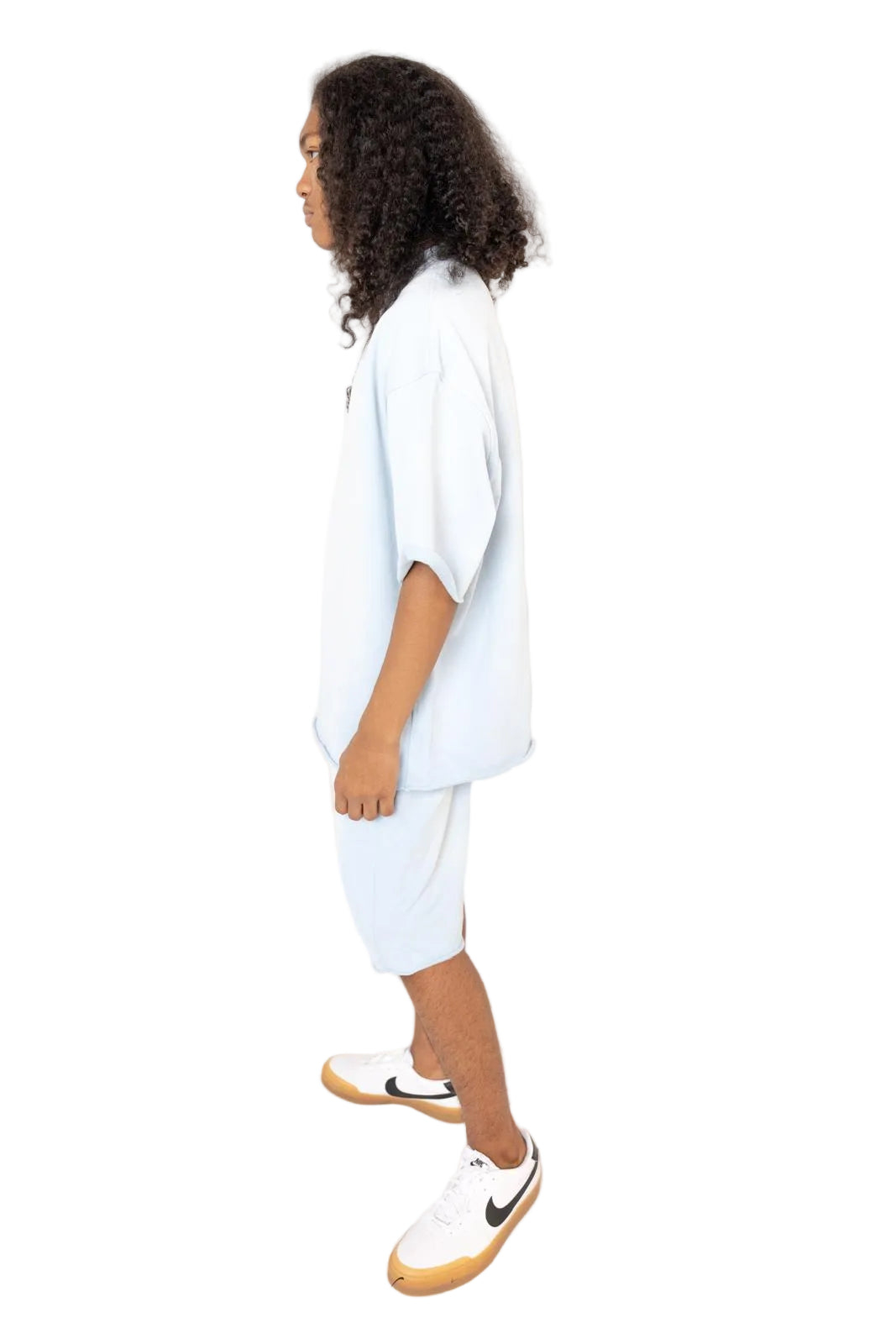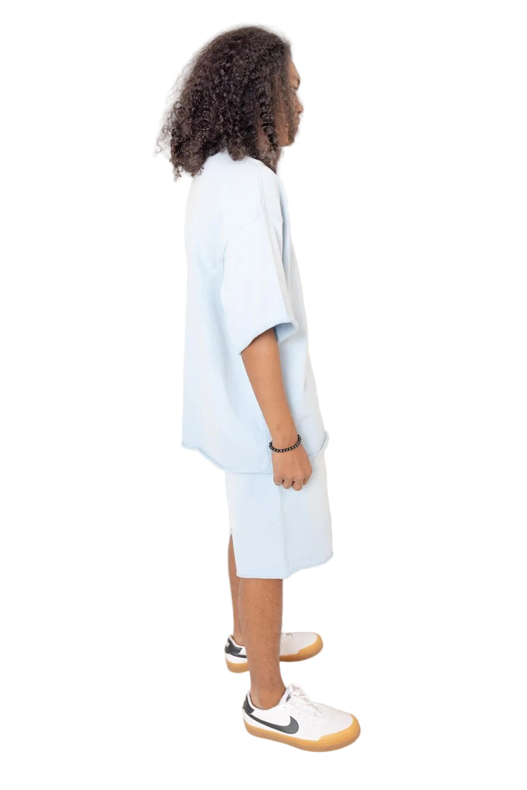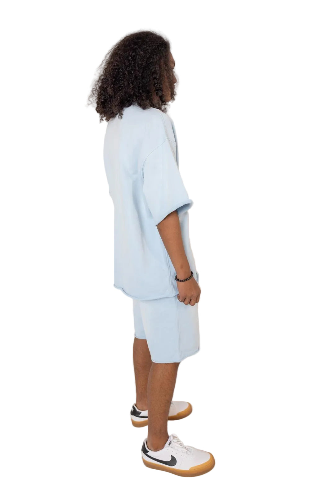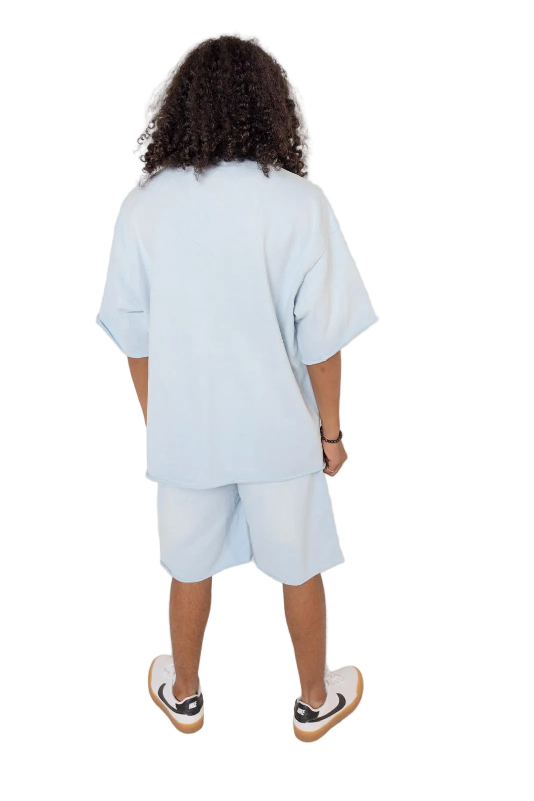 Elevate your spring-summer wardrobe with our Breezy Couture set in Blue Breeze. This oversized T-shirt pairs with matching oversized sweatshorts crafted from an 87% cotton and 13% polyester blend for a soft, breathable, and premium hand. The shorts feature two side pockets plus one additional right-side pocket, an elastic waistband with a drawstring for a secure, adjustable fit, and a relaxed silhouette that flatters every body. Perfect for sunny days, this set pairs effortlessly with sneakers or sandals for a chic, effortless look.