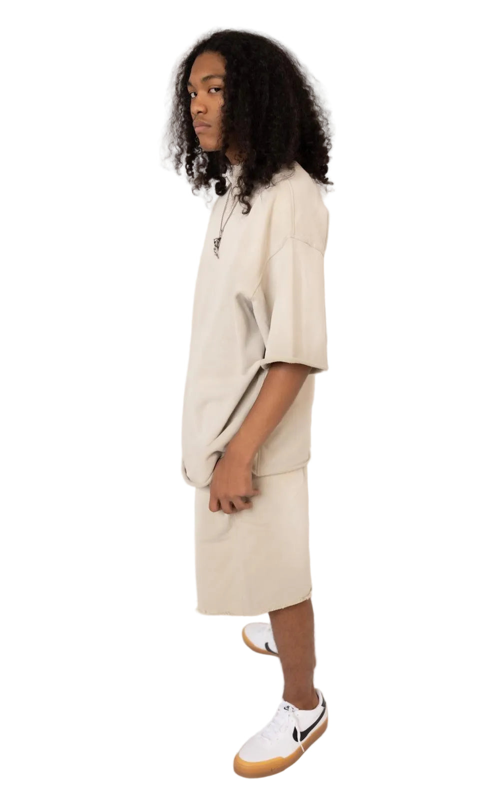 Set includes: One oversized T-shirt + one matching oversized sweatshorts