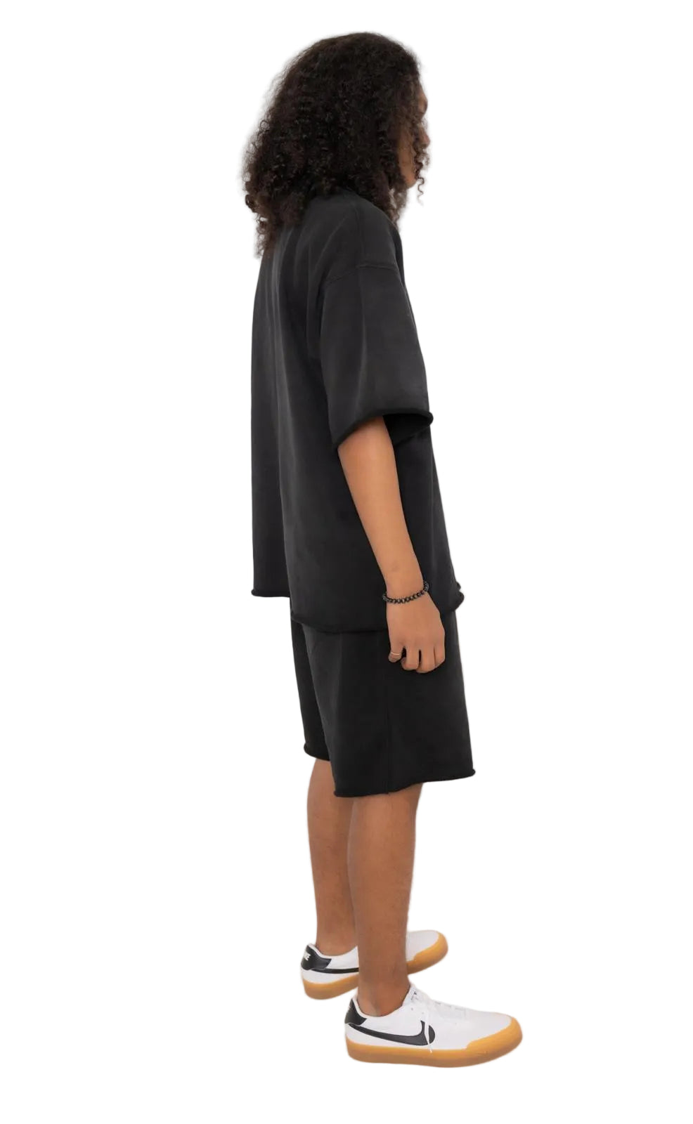 Elevate your spring-summer wardrobe with our Breezy Couture set in Kaito Noir. This oversized T-shirt pairs with matching oversized sweatshorts crafted from an 87% cotton and 13% polyester blend for a soft, breathable, and premium hand. The shorts feature two side pockets plus one additional right-side back pocket, an elastic waistband with a drawstring for a secure, adjustable fit, and a relaxed silhouette that flatters every body. Perfect for sunny days, this set pairs effortlessly with sneakers or sandals for a chic, confident look.