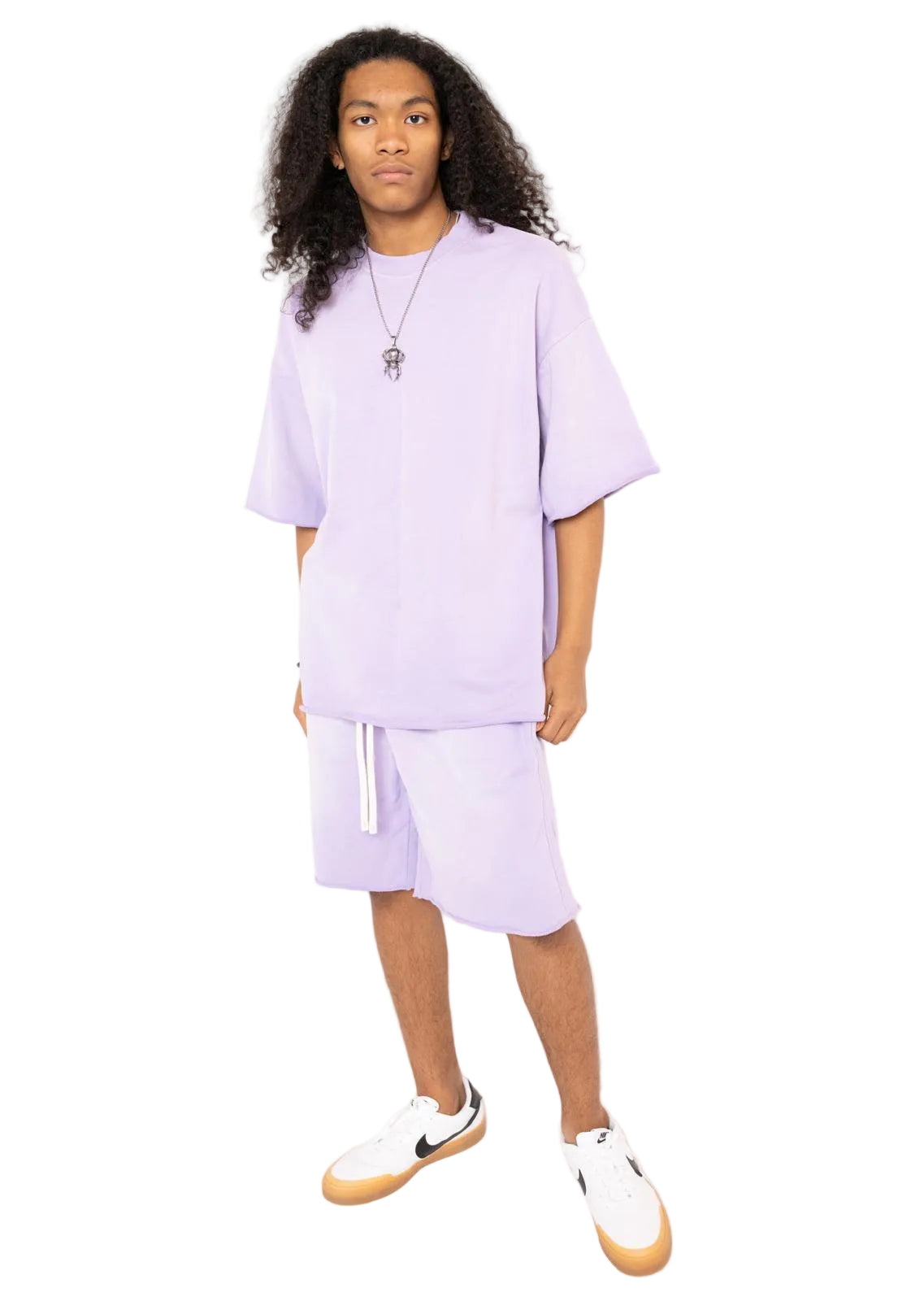 Set includes: One oversized T-shirt + one matching oversized sweatshorts